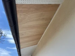 軒天ベニヤ板は、屋根の裏側から宅内に雨が侵入しないようにし、屋根下地が露出しないように美観性を維持するために仕上げられています。