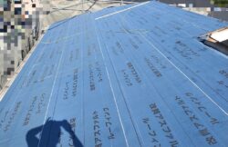 下茸き材と呼ばれる屋根材の下に敷く防水シートのことです。