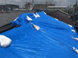 ・ブルーシートで屋根を覆う