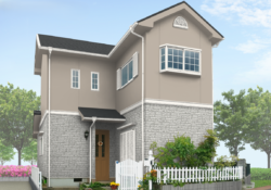外壁をグレーのツートンカラーにすることで、建物に立体感をメリハリが生まれます。1階に濃いグレー、2階に明るめのグレーやホワイトなど、ベランダや玄関部分だけ色を変えるデザインもあります。