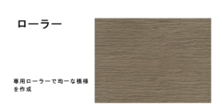塗り付け後、材料の乾き具合を見極めながらコテで模様を付けていきます。チカラ加減やコテの動かし方によって、ラフ仕上げやウェーブ模様など、様々な表情を演出できます。乾燥が早すぎても遅すぎても理想の模様は出せないため、職人さんの経験が最も問われる工程です。