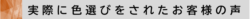 「完成後のイメージが掴みづらいと思っていましたが、色見本のおかげで不安がなくなり、楽しんで色選びができました。」