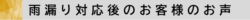 「夜中に雨漏りが始まり、どうしたらいいのか分からず本当に困っていました。翌朝すぐに相談したところ、迅速に調査や対応をしていただき、気持ちが落ち着きました。その後の説明もとても分かりやすく、不安なく工事をお願いすることができました。」