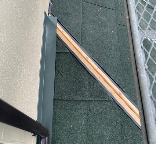 本体の貼り付け作業終了後、事前に取り付けした棟下地の上に樹脂木の設置