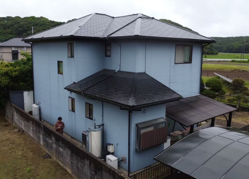 鹿嶋市にて一面外壁貼替工事/屋根外壁塗装工事/ベランダウレタン防水工事