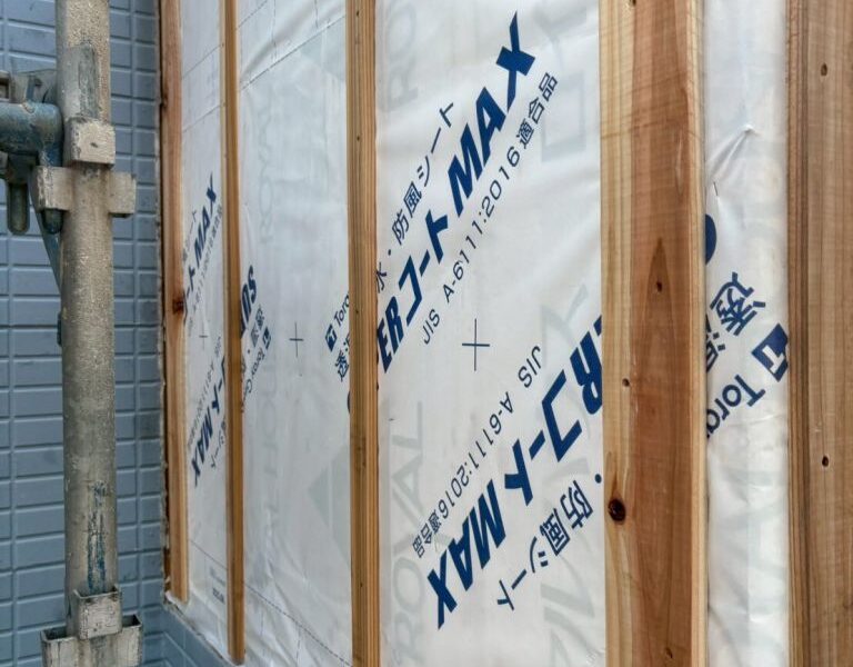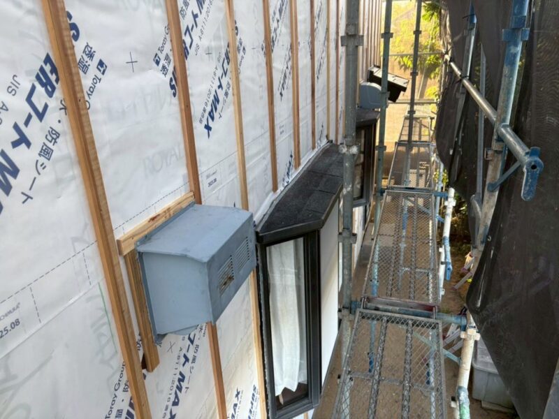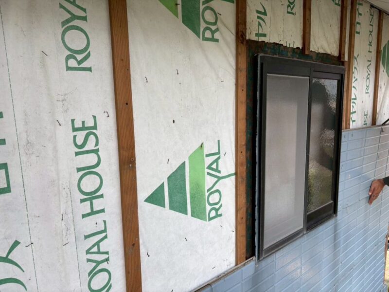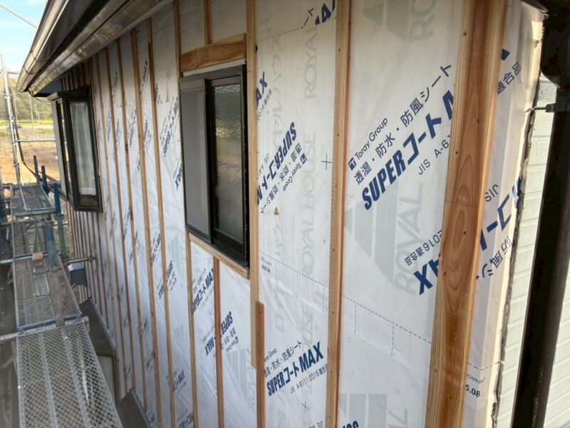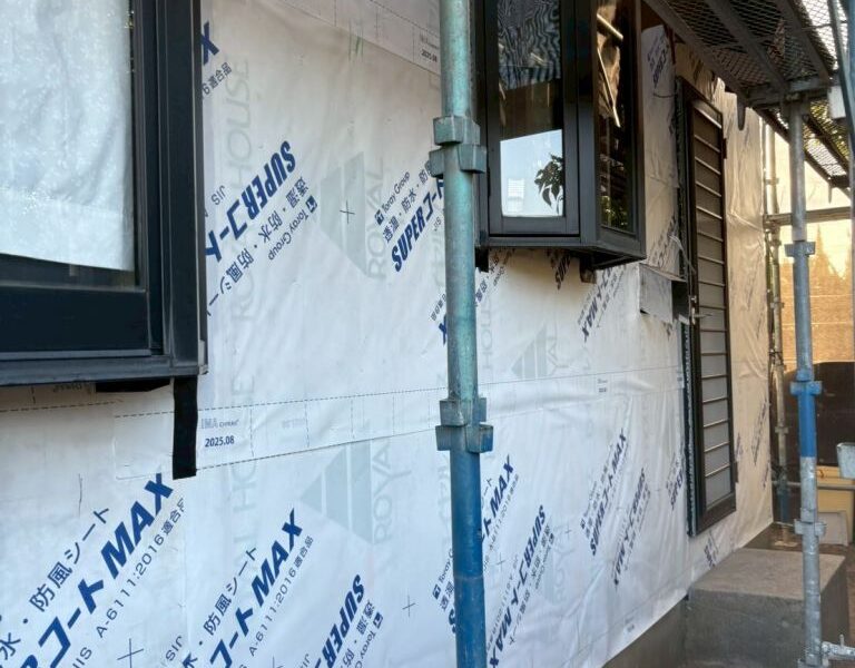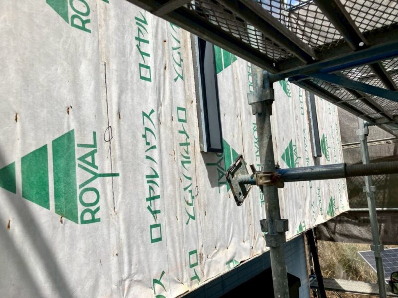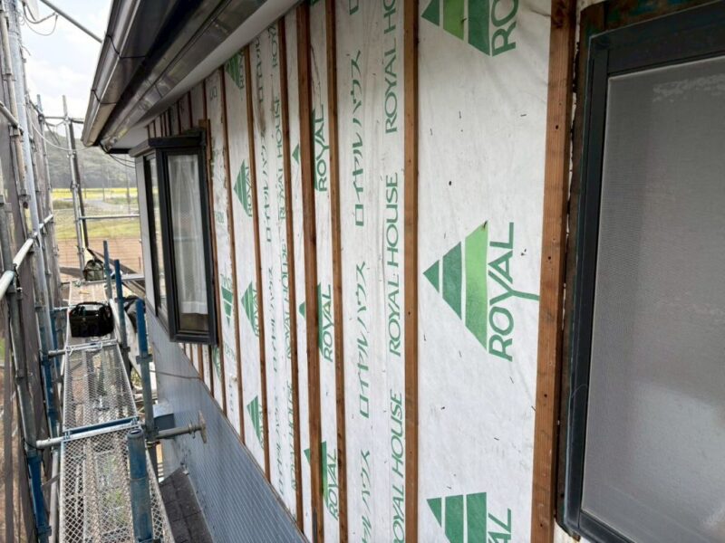 外壁貼替工事/新規透湿防水シート貼付け状況