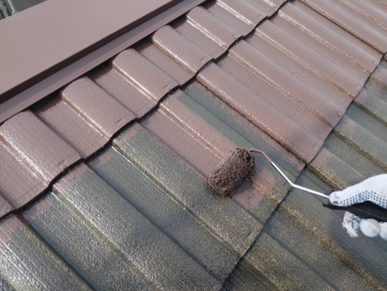 屋根の中塗り塗装