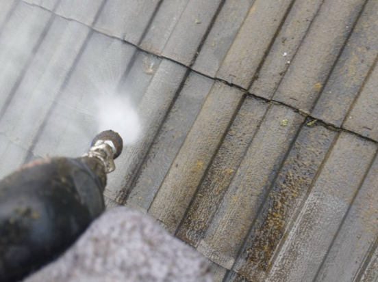 屋根の高圧洗浄作業