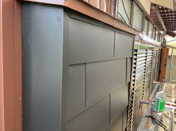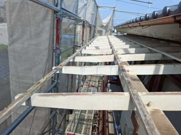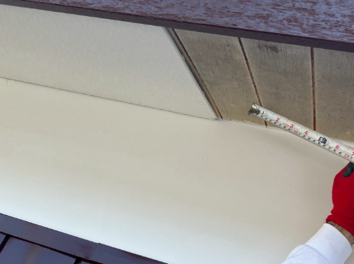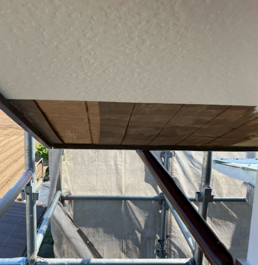 | 軒天工事/塗装済みケイカル板使用 | 軒天増し貼り工事、入隅部分及び軒先コーキング工事 |