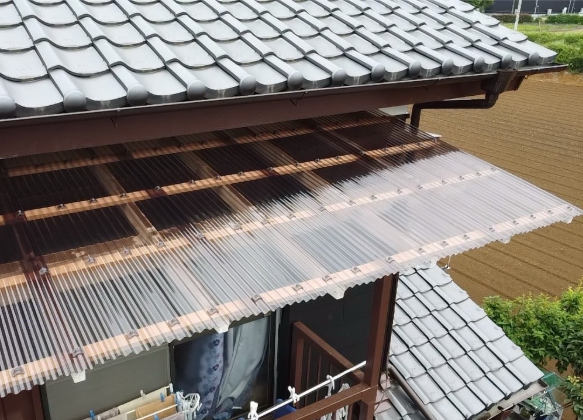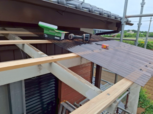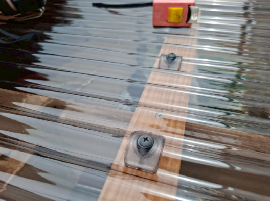 | 波板ポリカ工事 | 既存波板ポリカ取り外し工事、ポリカ材処分、本体工事(波板ポリカ)傘ビス止め |